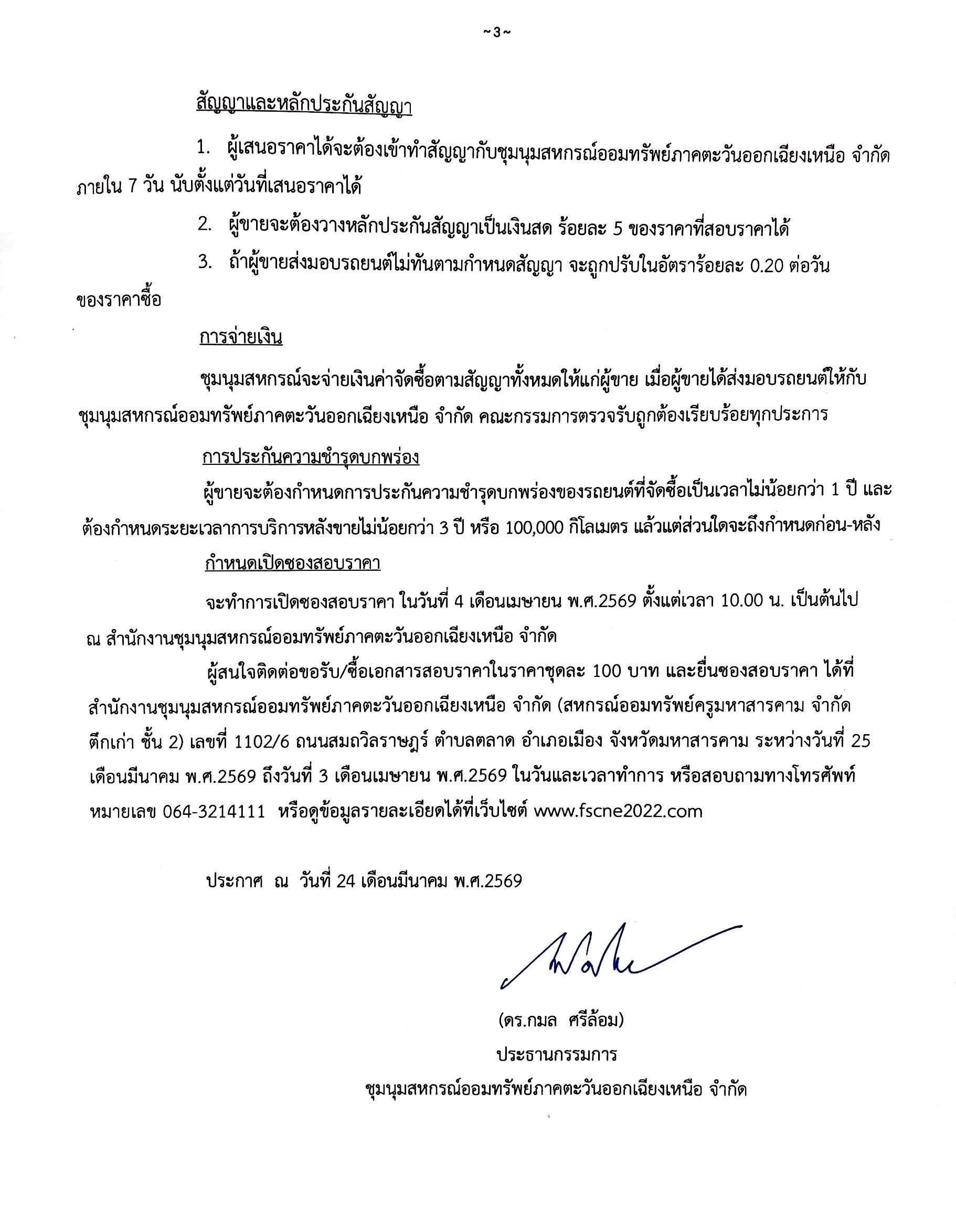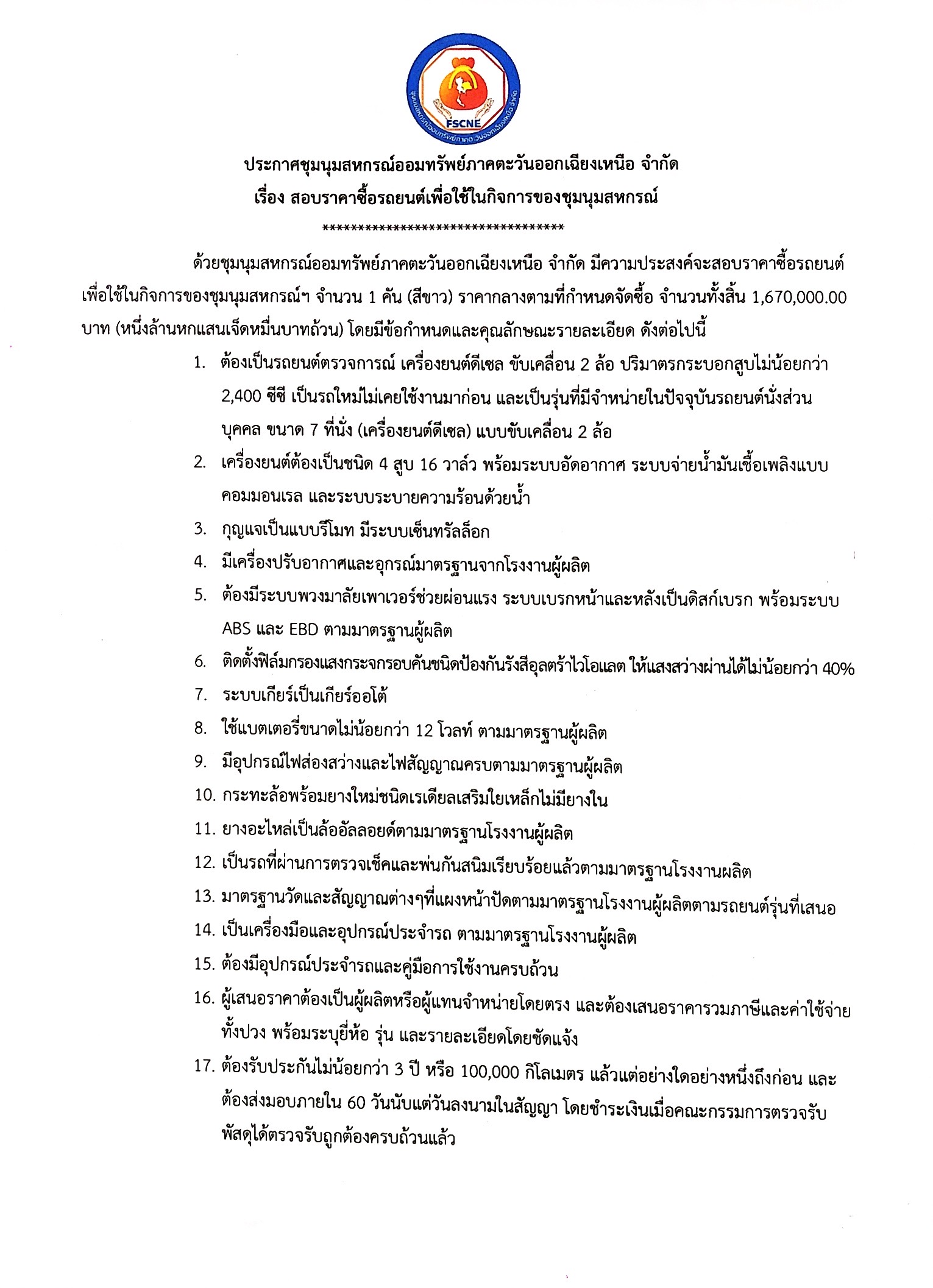 ประกาศเรื่องสอบราคาซื้อรถยนต์เพื่อใช้ในกิจการของชุมนุมสหกรณ์