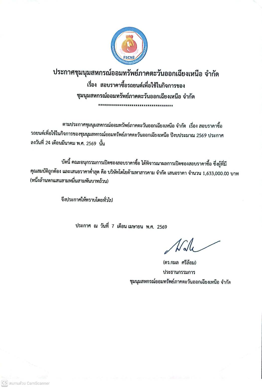 ประกาศ สอบราคาซื้อรถยนต์เพื่อใช้ในกิจการของชุมนุมสหกรณ์ออมทรัพย์ภาคตะวันออกเฉียงเหนือ จำกัด